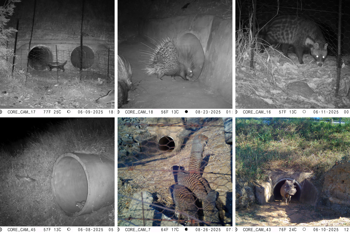 Camera Trap Monitoring To evaluate how wildlife utilizes existing infrastructure, we monitor 56 culverts of the 119 culverts along a 47km stretch of the R40 in Hoedspruit.